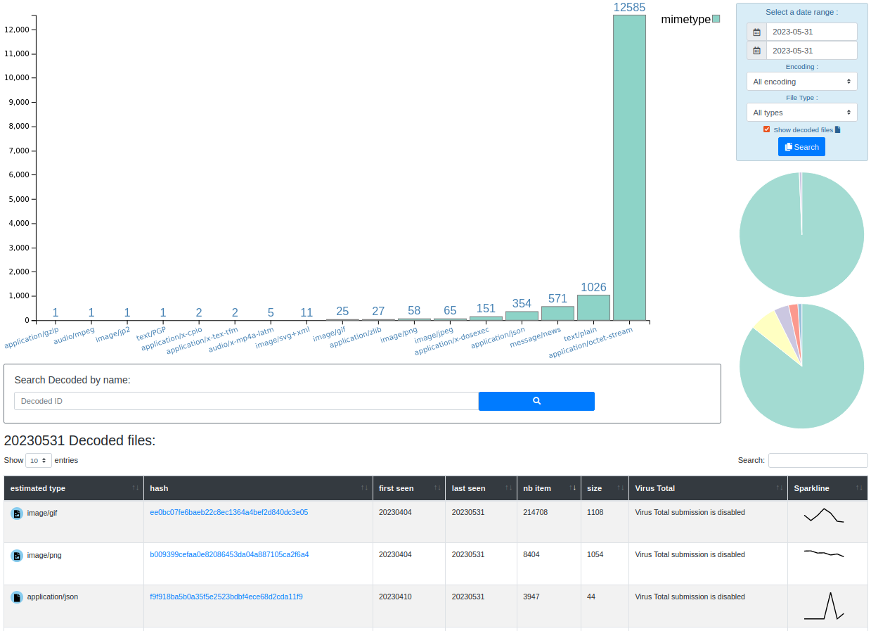 - Extracted and decoded files can be searched by date range, type of file (mime-type) and encoding discovered
