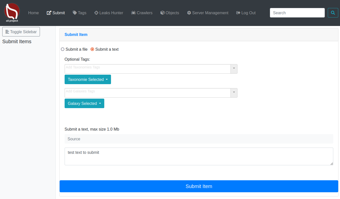 ./LAUNCH.sh -lYou can access the AIL framework web interface at the following URL: