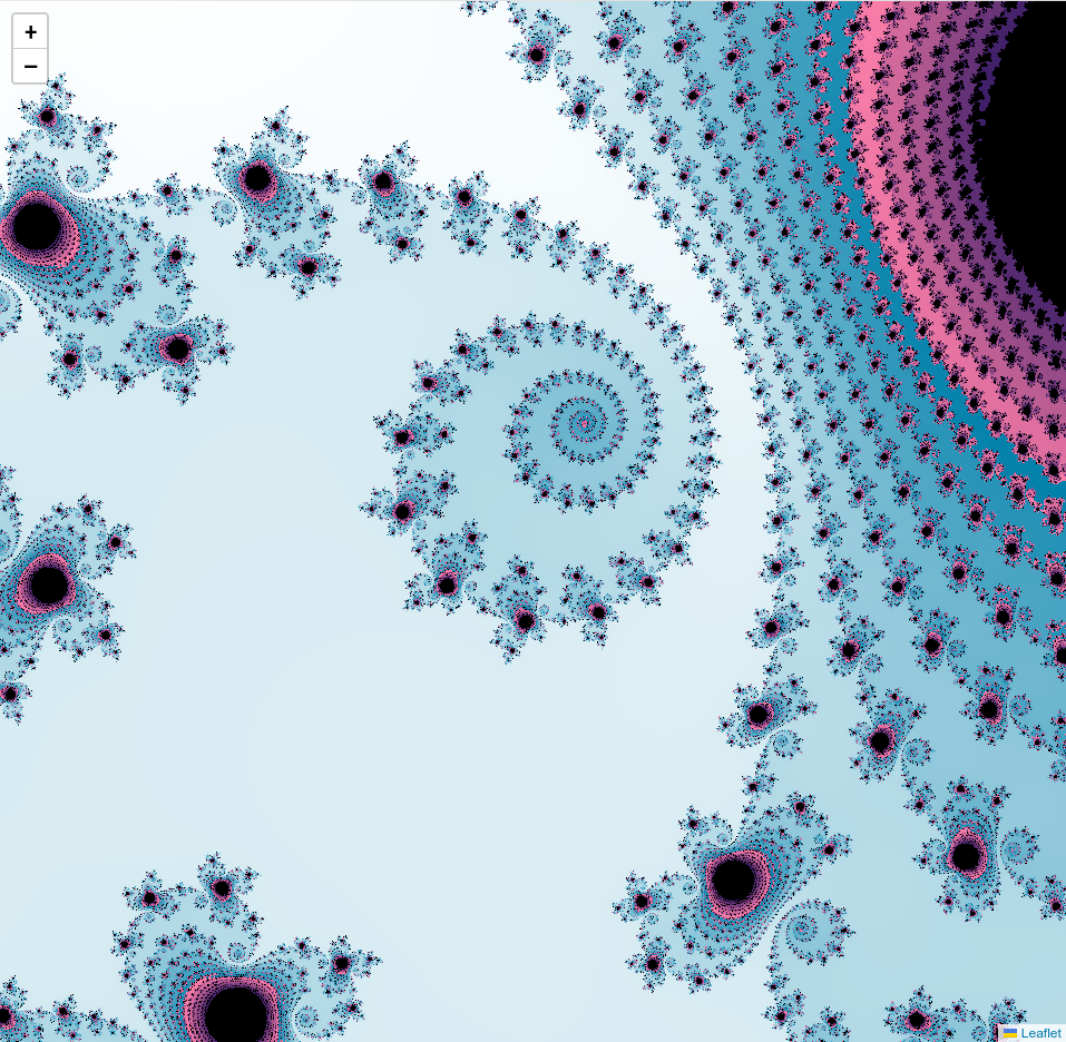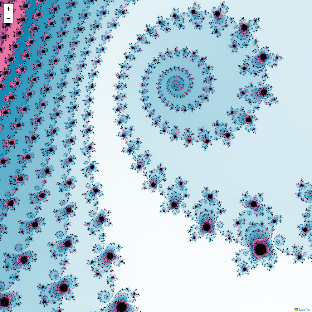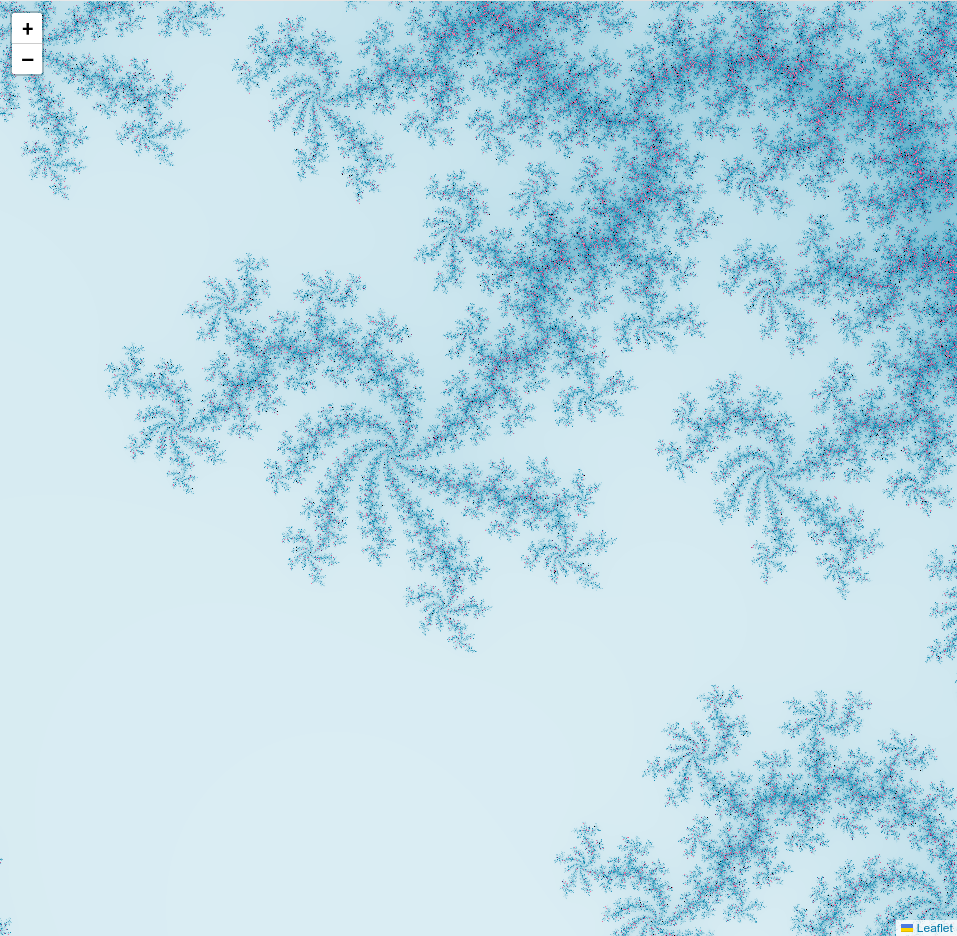 ジュリア集合を表示させることができる Leaflet プラグインです。 ズームイン・アウトをするたびに計算処理が行なわれ、タイルがレンダリングされます。 ジュリア集合の計算には WebAssembly を用いており、高速なレンダリング処理を可能にしています。