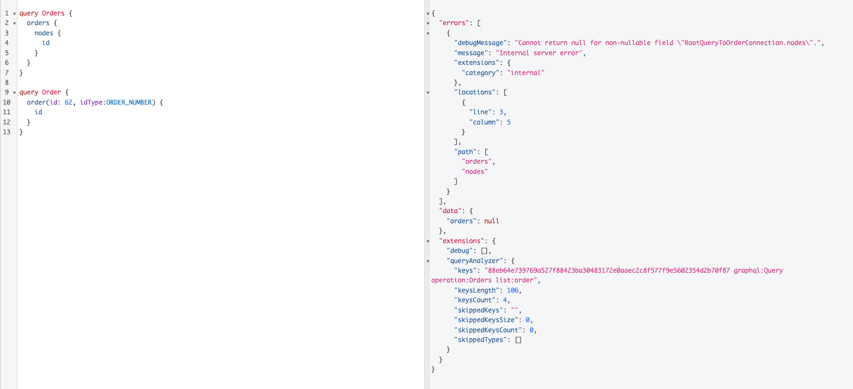 Internal server erroras response to simpleordersquery.To Reproduce